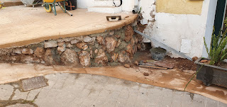 limpieza de piedra existente bajo el revestimiento en el muro de finalización de la Cl. Larga.